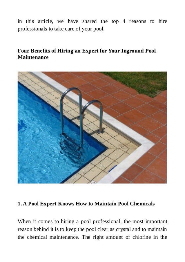 How do you treat a pool? May 17, 2021 · clean water and balanced water chemistry are the keys to pool maintenance. That's why a good testing kit is an essential for your pool maintenance toolkit. Apr 28, 2017 · how to take care of an inground swimming pool. When your water is properly balanced, you're less likely to struggle with issues like cloudy water, green water, or buildup of harmful bacteria.